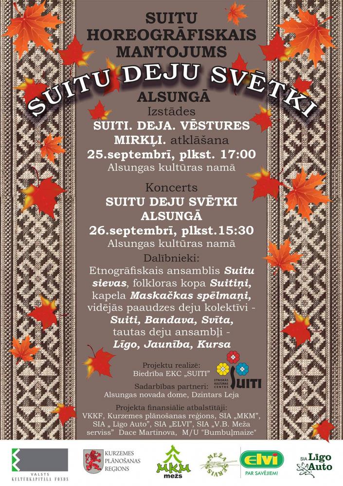 Kopš maija mēneša, kad VKKF Kurzemes kultūras projektu konkursā tika apstiprināts biedrības Etniskās kultūras centrs “Suiti”” projekts “Suitu horeogrāfiskais mantojums. Suitu deju svētki Alsungā” (VKKF finansējums projektam 4000 EUR), notika spraigs darbs pie projektā paredzēto ieceru īstenošanas.