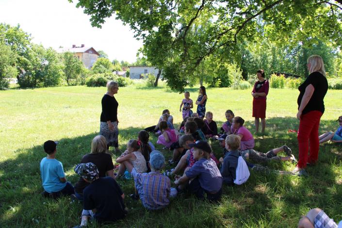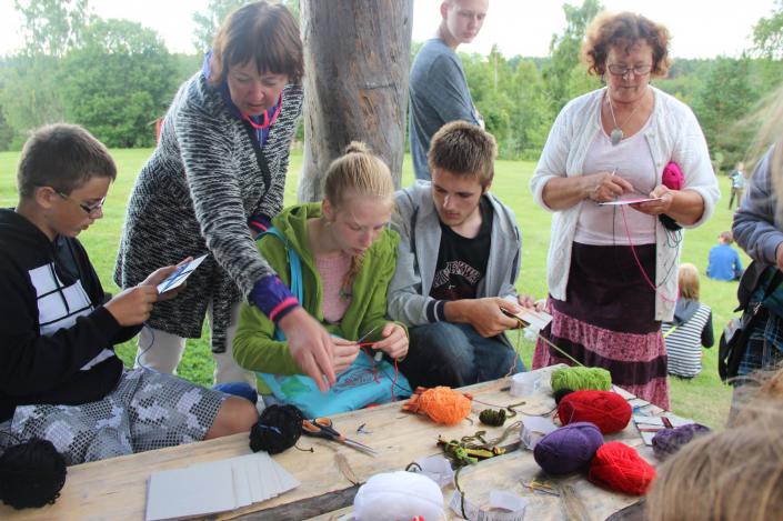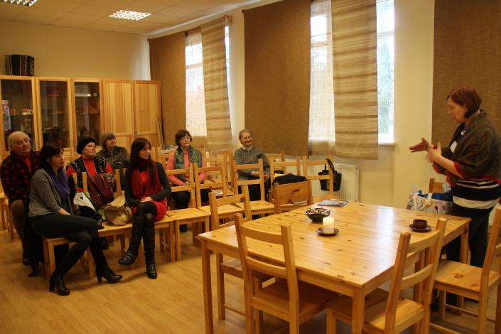 Rīts iesākās a dalīšenos trīs grupās vien devās uz nodarbīb Jūrkalns tauts name , kur iemēģenāj rok suit zeķ un cimd rakst krāsošene. Otr grup devās uz Jūrkalns bibliotēk kur sagaidīj Ligit Kalniņ , kas izstāstīj pa Jūrkalns vēstur un izrādīj stells. Trešā grup devās uz kalej Ruļļ kalējdarbnīc, la iepazītos a kalēj darbim.