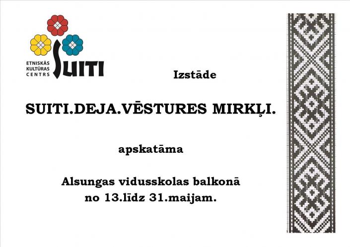 18.februārī Alsungas kultūras namā tika atklāta izstāde "Suitu cimdu pūrs". Kopā izstādē bija apskatāmi vairāk kā 100 pāri krāšņu cimdu suitu rakstos. Paldies par pašdarinātiem un mantotiem cimdiem, kuri tika atnesti uz izstādi, Dacei Cīrulei, Mārītei Kreičmanei, Dzintaram Lejam, Ilzei Preisai, Ausmai Ķēdei, Rozālijai Brūderei, Dacei Martinovai, Anitai Raģelei, Inesei Gūtmanei, Zaigai Vanagai, Valdai Zingbergai un Ingai Šēnai-Laizānei! Tāpat izstādē bija apskatāmi arī cimdi no Suitu mantojuma krātuves.