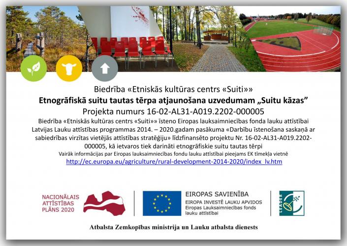 Pateicību par nozīmīgu ieguldījumu suitu kultūras mantojuma apzināšanā, tradīciju kopšanā un popularizēšanā: Andris Vasiļevskis, Kristīne Vasiļevska-Stepanova, Inga Šēna –Laizāne, biedrība “Suitu amatnieki”, Dzintars Leja, Ligita Kalniņa, Rasma Cīrule, Zanda Mūrniece.