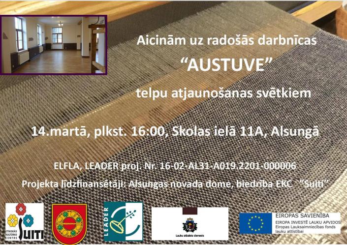 Projekta finansētāji: LR Kultūras ministrija – 600 EUR, VKKF Kurzemes kultūras programma – 400 EUR.