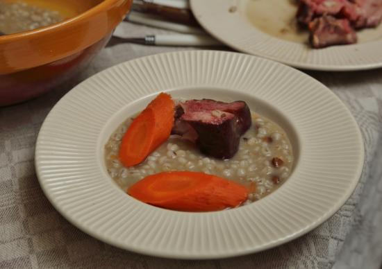 Grību zīdenis – grūbas ar kūpinātu cūkas šņukuru.