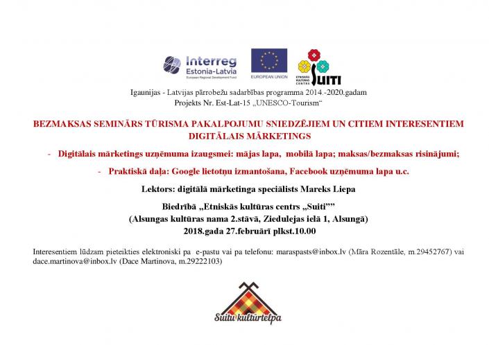 Informācija par projektu EST-LAT mājas lapā: https://estlat.eu/en/estlat-results/unesco-tourism.html