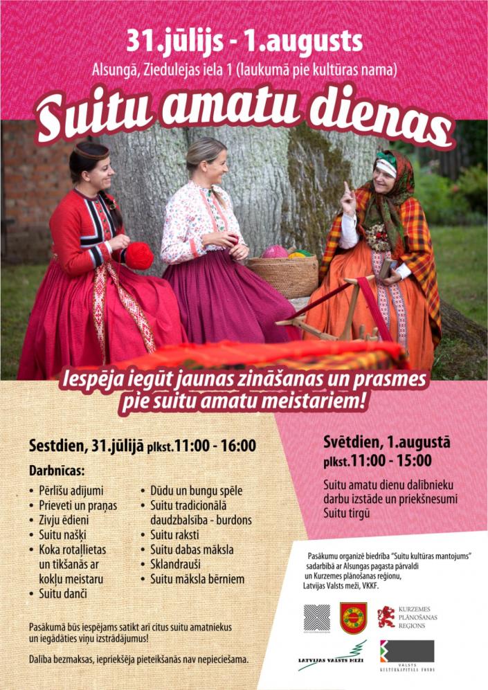Pasākums tiek organizēts VKKF Kurzemes kultūras programmas projektā "Suitu amatu dienas" ar Kurzemes plānošanas reģiona un Alsungas pagasta pārvaldes atbalstu.
