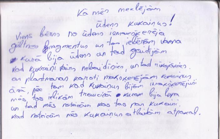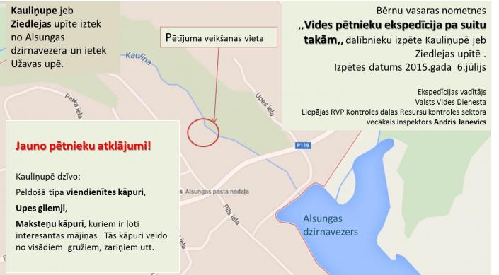 Bērni salīdzināja likumā noteikto vides prasību (pieļaujamo notekūdeņu piesārņojuma līmeni) normas ar pēdējām uzņēmumā veiktajām ķīmiskajām notekūdeņu analīzēm, kā arī pārbaudīja Kauliņupītē iztekošo uzņēmuma notekūdeņu tīrību pēc tajā mītošajām augu un dzīvnieku sugām. Netālu no notekūdeņu iztekas upē tika atrasti vairāki Peldošā tipa viendienītes kāpuri, kuri mītot tikai tīros ūdeņos.
