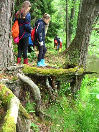 Jūrkalnes vides izpēte turpinājās dabas takā Rīvas loki, kas iet cauri mežam gar līkumainās Rīvas upes gultni. Ejot pa 3 km garo taku vides inspektors ik pa laikam pievērsa dalībnieku uzmanību dažādām dabas un vides vērtībām, mācot bērniem saprast atšķirību starp dabas un vides jēdzieniem (vide sevī ietver gan dabu, gan arī cilvēka radīto).