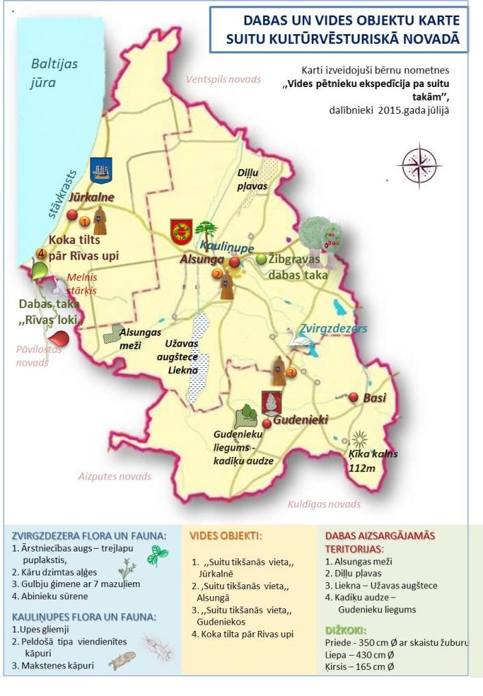 Nometnes dalībnieku izveidotā suitu novada vides objektu karte: