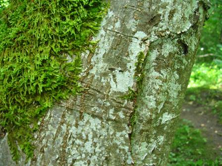 Uzmanību piesaista baltais alksnis kurš ir plankumains un noskaidrojam, ka plankumus veido ķērpji.