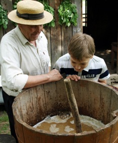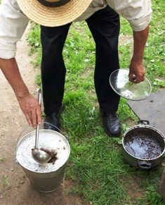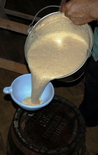 Izkāsto alu uzmanīgi iepilda ozolkoka muciņā.