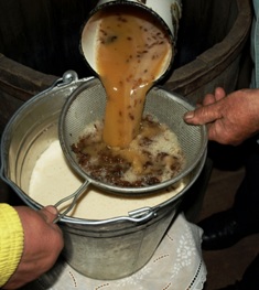 Pēc diennakti ilgas rūgšanas alu izkāš un pilda muciņās.