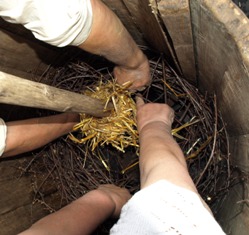 Mucas jeb baļļas dibenā liek klāstu no bērza zariem un salmiem.