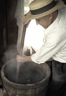 Alus mucas izplaucē ar kadiķi. Savāra ūdenī, verdošu ielej mucā un pārsedz ar palagu, lai izdezinficējas.