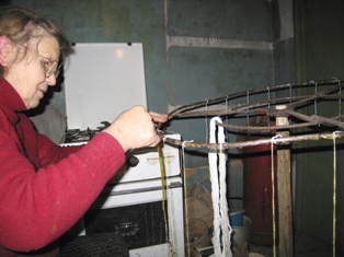Martas sveču taisīšanas ierīce sastāv no diviem vertikāliem stabiņiem, kuriem pāri uzliek vieglu metāla cauruli. Tas ir statīvs. Šajā caurulē Marta stiprā linu auklā iekarina no klūgām pītu apli, kas kalpo par sešu degļu turētāju. Martas rokas izlīdzina degļus un viņa skaidro: "Tā nav liela māka. Ieleju vasku bļodā, to ielieku katlā ar karstu ūdeni. Zem katla lieku šo te elektrisko plīti, un viš to ūdeni silda. Stipri sildīt nedrīkst, tad vasks kļūst šķidrs. Tas nedrīkst būt ne par karstu, ne par aukstu. Ja vasks sāk kust, plītiņu izslēdzu. Vasku lēnām leju pa dakti uz leju, kad viena kārta sastingst, leju nākamo. Sveci audzēju apmēram stundu. Šim darbam vajag ļoti lielu pacietību, ļoti lielu."