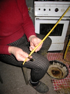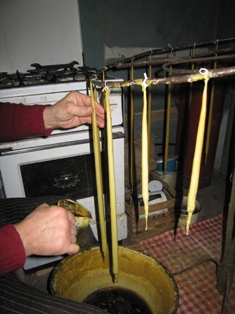 Pirms sveces audzēšanas viņa degli stingri savij un nobrauka ar vaska gabaliņu, lai netinas vaļā. Marta neslēpj - viņa neko laukā nemetot, tāpēc vaskam pieliekot arī savāktās izdegušo sveču atliekas - lai neiet zudumā, izkausēju izdeglīšus, caur marli izkāšu un pielieku izkusušajam vaskam.