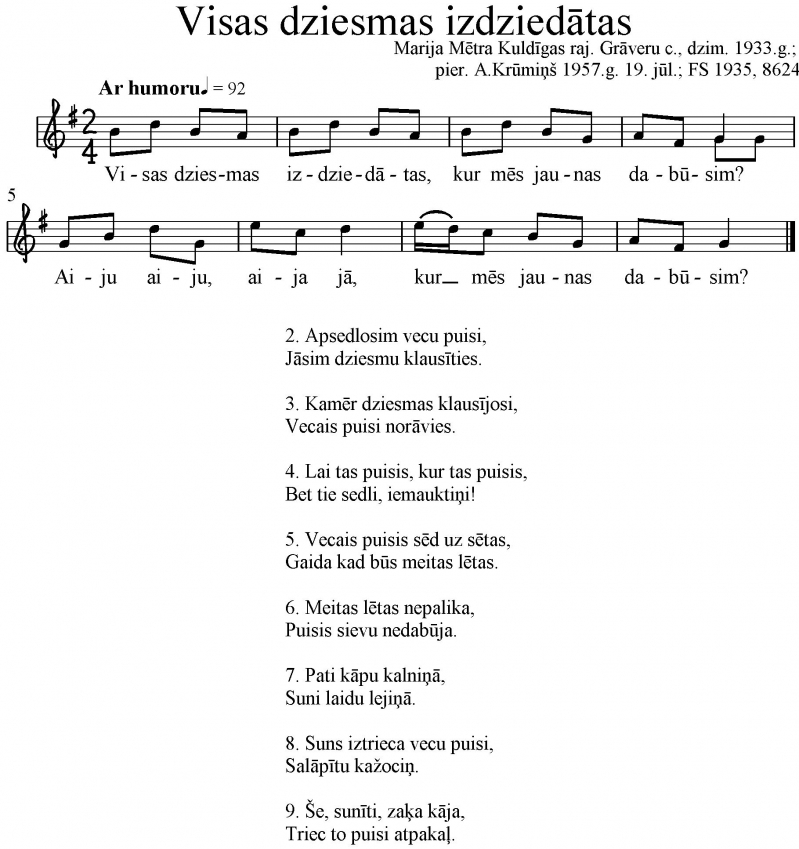Apkopotais materiāls noderēs gan dziedātājiem, gan ansambļiem, gan pētniekiem. Ja Dievs dos, kādubrīd tās arī šajā lapā skanēs.