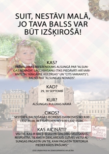 Alsungas pagasta padome, lai uzzinātu savu iedzīvotāju viedokli, 2007. gada 29. un 30. septembrī sarīkoja iedzīvotāju aptauju. Tajā gandrīz 91 procents no atnākušajiem 332 iedzīvotājiem nobalsoja par sava novada saglabāšanu. 22. novembrī Alsungas pagasta padome, atsaucoties uz notikušās iedzīvotāju aptaujas rezultātiem, pieņēma lēmumu veidot atsevišķu Alsungas novadu. Tā kā Ministru kabineta nostāja 11. decembra sēdē nemainījās, 29. decembrī Alsungas pagasta padome nolēma apstrīdēt Ministru kabineta lēmumu Satversmes tiesā. Pieteikums uz Satversmes tiesu tika nosūtīts 2008. gada 29. februārī. Papildus pašvaldības pieteikumam Satversmes tiesā 12. martā vērsās arī desmit Alsungas iedzīvotāji.